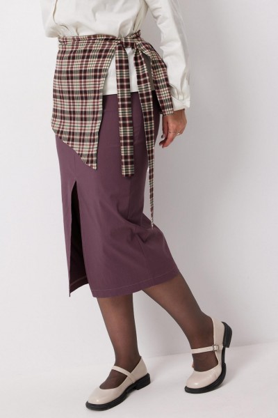 Если Вам хочется стильную, необыкновенную юбку, которая умеет меняться вместе с Вами, тогда эта элегантная модель со съёмной баской - именно то, что Вам нужно! Баска - это не просто украшение, а возможность мгновенно преобразить Ваш образ. Добавьте её для создания более драматичного и женственного силуэта, или снимите, чтобы получить классическую универсальную юбку, подходящую для любого случая. Юбка идеально сочетается с блузами, джемперами, лонгсливами, каждый раз создавая новое, неповторимое впечатление. Элегантная юбка миди без подкладки, прямого кроя - идеальный выбор для создания стильных образов. Её универсальность позволяет сочетать юбку с различными блузами и обувью, подчёркивая женственность фигуры. Юбка выполнена из текстильной хорошо растяжимой ткани, идеально садится по фигуре, стройнит, визуально вытягивает силуэт. По центру выполнен разрез правильной высоты, создающий элегантную линию по ножке. Пояс притачной, без застёжки на эластичной резинке с островком. Низ изделия обработан в подгибку. Баска отлитная (съёмная) на поясе с резинкой, который завязывается самостоятельно, выполнена из приятной к телу костюмной текстильной ткани в клетку.