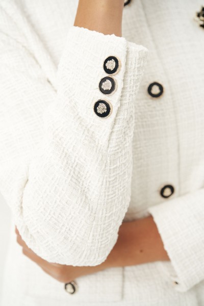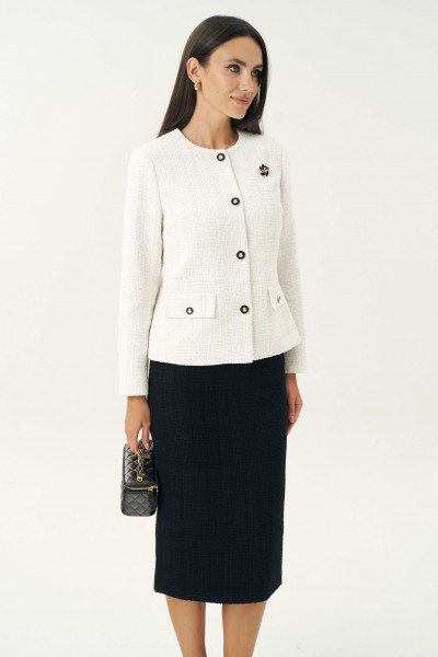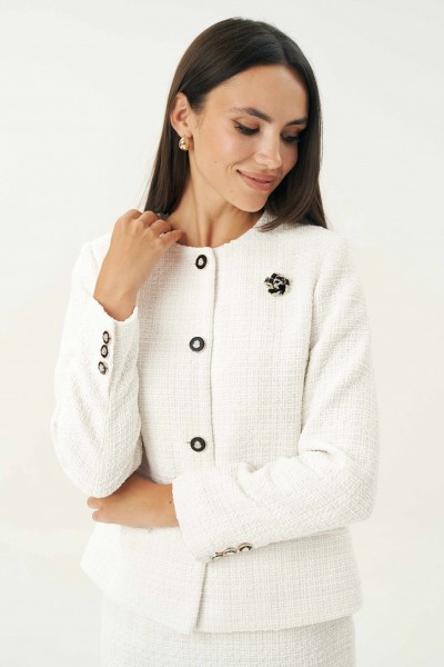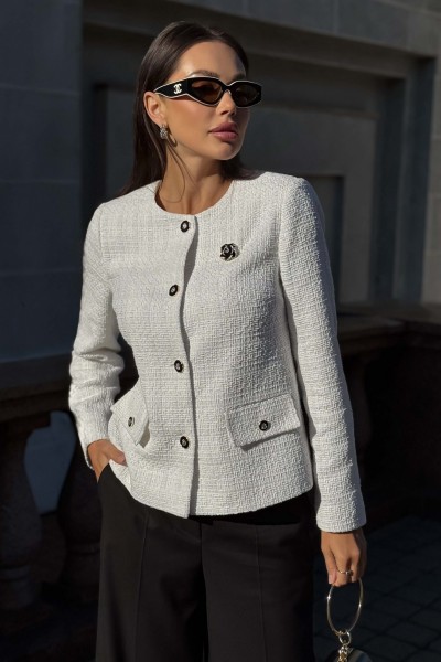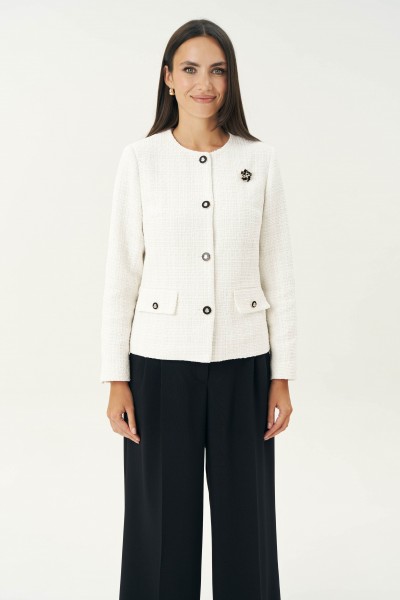 Элегантный твидовый жакет — это универсальная модель, созданная для женщин, которые ценят стиль, качество и комфорт. Классический силуэт, декоративные пуговицы и качественная ткань делают этот жакет актуальным как для офиса, так и для повседневных или вечерних образов.Жакет женский прямого силуэта, выполнен из твидовой ткани, на подкладке, со съемной декоративной брошью, с центральной бортовой застежкой на 4 петли и пуговицы (размер и цвет фурнитуры может незначительно отличаться от фото). Жакет может быть как нарядным, так и повседневным.