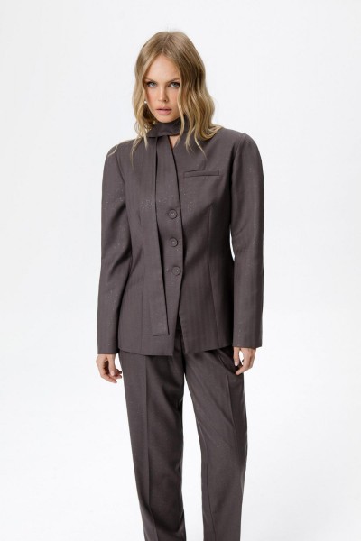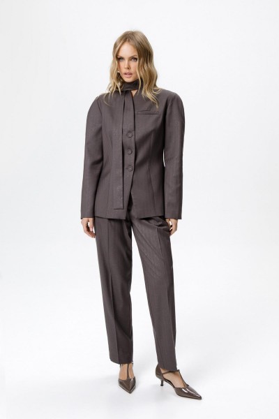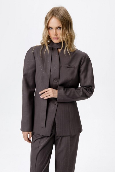 Приталенный жакет с акцентными плечами и воротником-стойкой.
