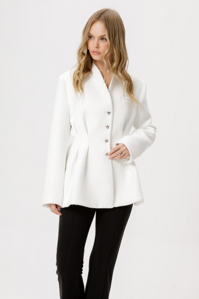 Приталенный жакет со складками и расширенными плечами из фактурной ткани.