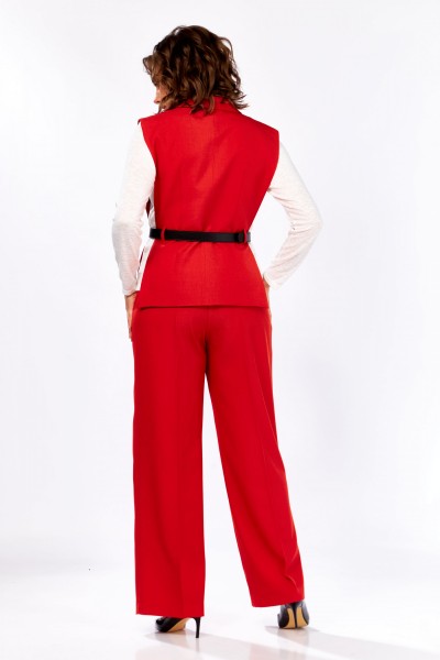 - Жилет: приталенный крой подчёркивает линии силуэта, а V-образный вырез визуально удлиняет шею и делает образ более утончённым. Застёжка на потайные кнопки добавляет аккуратности и минимализма.