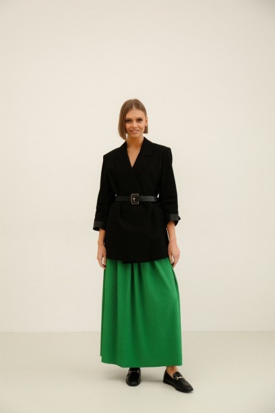 Стильный комплект, состоящий из жакета и длинной юбки.