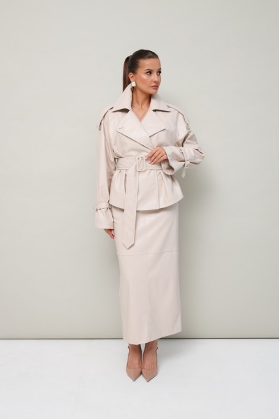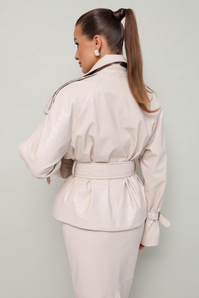 Стильный 2-предметный комплект, состоящий из жакета и юбки, выполненный из экокожи.