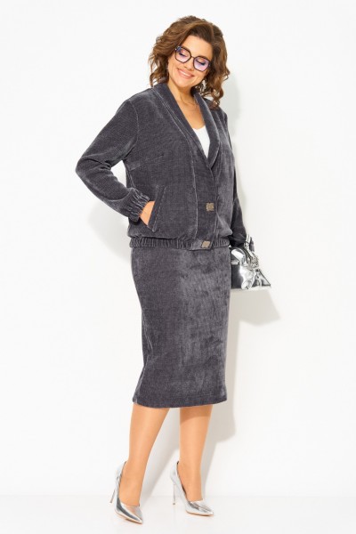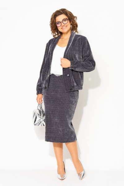 Этот костюм отлично садится на большие размеры и плюс сайз, подчеркивая достоинства фигуры и скрывая лишнее. Мы используем только качественную ткань Турция. Длина по спинке – 60, рукав – 62. Юбка – 72 см.