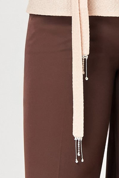 Комплект женский, состоящий из блузы трикотажного полотна с блеском и отделкой пайетки и брюк из костюмной ткани.