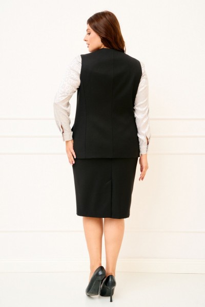 Состав ткани: Жилет и юбка: костюмная ткань вискоза - 70%, полиэстер - 25%, спандекс - 5%. Блуза: сатин полиэстер - 100%.