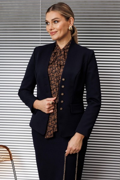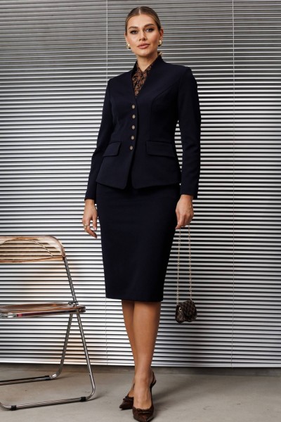 Застежка на тесьму-молнию в среднем шве, который переходит в шлицу. Жакет и юбка на подкладке. длина юбки: 70 см