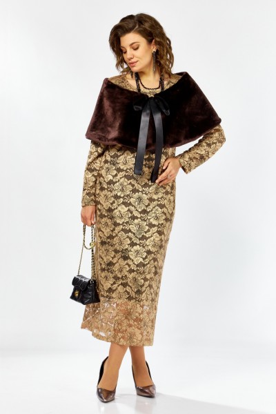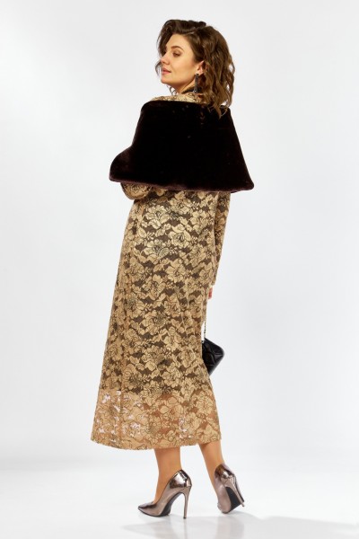 Элегантный и утонченный комплект с изящной меховой горжеткой, созданный для особых случаев в основе платье полуприлегающего силуэта на трикотажной подкладке из кружевного гипюра с контрастным рисунком в цветочной тематике, мягко драпируется , создавая воздушный легкий силуэт длинные рукава и свободный крой добавляют образу благородства и загадочности.