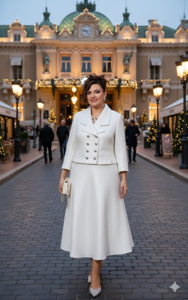 Изящный женский юбочный костюм из твида в стиле Шанель, состоящий из жакета и юбки, подчеркнет Ваш стиль, где элегантность и сдержанность сочетаются с яркой роскошью! Мерцающее на свету перламутровое напыление подчеркивает богатую фактуру твида, и создает неповторимое праздничное настроение! Рыхлая и подвижная структура позволяет твиду красиво обрисовывать фигуру, скрывая все несовершенства и подчеркивая достоинства. Костюм состоит из жакета и юбки. Жакет прилегающего силуэта, укороченный с двубортной застежкой на петли и пуговицы, воротник отложной с лацканами пиджачного типа с закругленными краями. В жакете отрезные бочки с разрезами по низу. Спинка без особенностей. Рукав втачной, одношовный, длинной 7/8. Жакет на подкладке. Юбка расклешенная с притачным поясом с резинкой по спинке, по переду наклонные карманы. В боковом шве юбки застёжка на потайную молнию и пуговицу в поясе. Юбка на подкладке. Обращаем Ваше внимание, что фурнитура может незначительно отличаться от фото.
