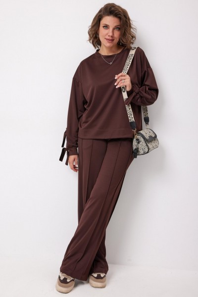 Невероятно уютный, универсальный трикотажный комплект, состоящий из свитшота и брюк свободного кроя. Вы непременно окажетесь в центре внимания, благодаря современному крою и оригинальной расцветке этой модели. Комплект подарит чувство уюта и комфорта. Декоративная отделка пришивными бантами из основного материала с необработанным срезом добавляет шарм его обладательнице. Горловина свитшота полукруглой формы, с открытым срезом, обработана притачной обтачкой из основного материала. Рукав втачной, со спущенной линией плеча и манжетой по низу. Низ изделия обработан обтачкой имеет форму полукруга. Брюки свободного кроя с притачным поясом на резинке с островком. Спереди и сзади расположены две застроченные стрелки. Это конструктивное решение для идеальной посадки по фигуре. Низ обработан подгибкой. По бокам - карманы хулиганы. Такой комплект можно носить как в офис, так и на прогулку, в нём можно провести приятный вечер в любимом кафе с друзьями. Свитшот арт. 4139 и брюки арт. 6071 можно приобрести отдельно.