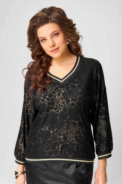 Джемпер свободного силуэта выполнен из мягкого трикотажа с декоративной сеткой. V-образная горловина и манжеты оформлены эластичным довязом, а спущенный рукав придаёт образу расслабленную элегантность.