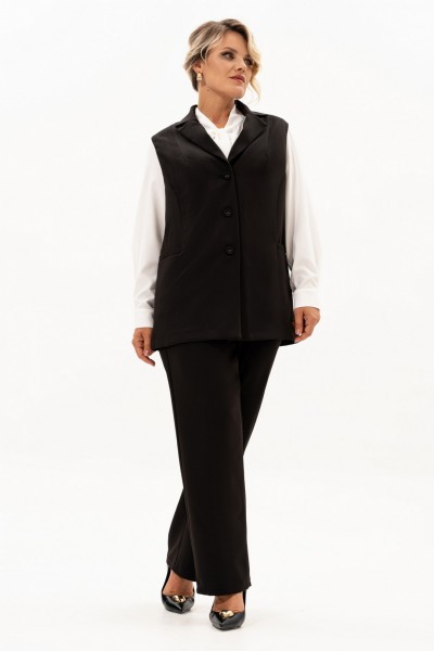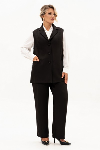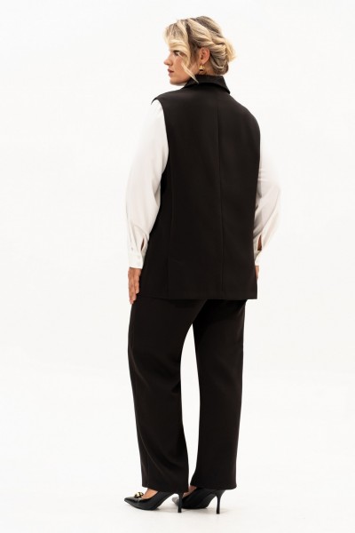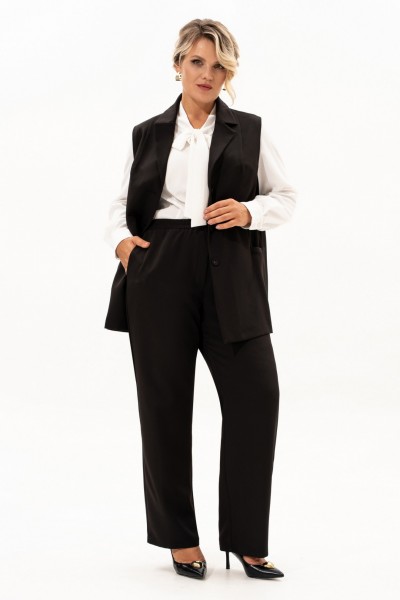 Элегантный костюм с жилетом – тренд осенне-зимнего сезона! Этот костюм является настоящей находкой для любой модницы, идеально сочетая строгий стиль и современный дизайн! Костюм-двойка, выполненный из качественной костюмной ткани, включает в себя классические прямые брюки и молодежный жилет, создавая гармоничный образ в духе old money. Детали: Жилет – с лацканами и воротником, прорезными карманами с листочкой, на спинке обработаны шлицы в рельефах. Брюки – прямого силуэта на эластичной резинке по поясу с имитацией застежки-гульфика для удобства и безупречного силуэта. Этот универсальный костюм подходит для офиса, деловых встреч, вечерних мероприятий и праздничных выходов. Дополните его аксессуарами – и ваш образ заиграет новыми красками! С выбором этого костюма, стиль, комфорт и элегантность станут вашими спутниками в новом сезоне!