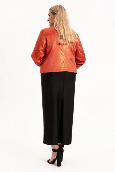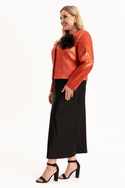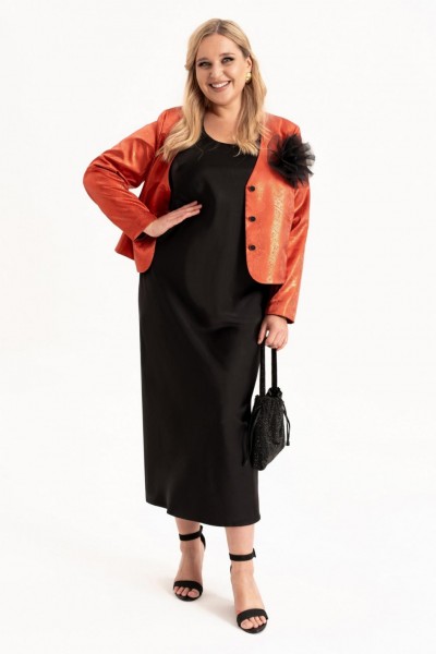 Элегантный женский комплект «двойка» больших размеров — идеальный выбор для женщин с пышными формами, который сочетает в себе комфорт, стиль и изящество. Модель состоит из двух элементов: лаконичного платья из струящегося атласа, кроеного по косой и короткого жакета, полуприлегающего силуэта на подкладке. Такой тандем создает утонченный и женственный образ, который прекрасно подойдет как для вечерних выходов, торжеств, так и для повседневного ношения или работы в офисе. Жакет полуприлегающего силуэта, с центральной застёжкой на петли и пуговицы и с рельефами от плеча по переду, закругленный низ борта. Спинка в жакете со средним швом . Рукав втачной, двухшовный, длинный. Платье кроенное по косой, что обеспечивает красивую посадку и мягкое облегание по фигуре. Углубленная горловина добавляет лёгкой чувственности, а нагрудные вытачки от проймы подчёркивают линию груди. В комплекте идет съемный цветок- брошь. Длина изделия (см): 131 Длина жакета (см): 52 Длина рукава жакета (см):61