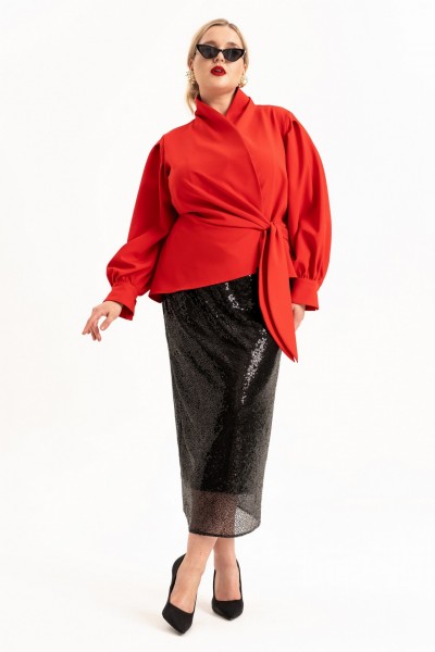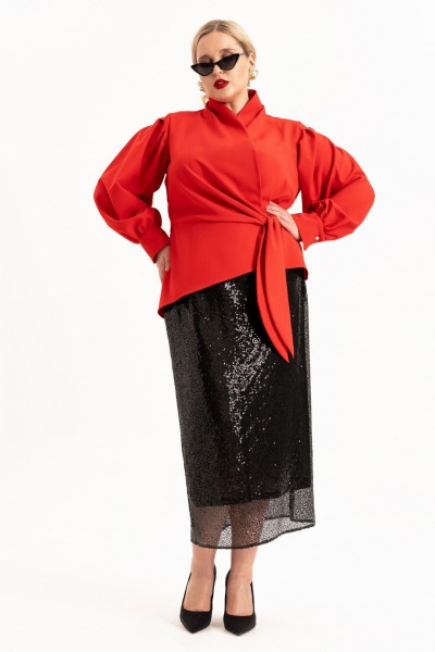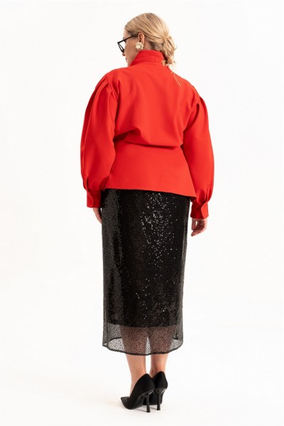 Элегантный женский костюм из ткани «марчано» и паеток на трикотажной подкладке стильный и универсальный наряд для различных мероприятий. Данный женский костюм состоит из нарядной блузы и роскошной юбки с паетками, что делает его идеальным решением для безупречного образа.На юбке обрабона потойная молния в боковом шве, пояс на резинке. Блуза с отрезной баской и воротником стойкой переходящей в борта. Застежка на потайную петлю и пуговицу и на завязки. Рукав длинный, втачной на манжете. По окату рукава обработаны складки. Благодаря универсальному дизайну, костюм можно успешно сочетать с различными элементами гардероба, создавая разнообразные стили от официального до повседневного. Стильный, роскошный, изысканный, комплект идеально подойдет для различных мероприятий. Отражает роскошь, придает элегантность и изысканность. Будет великолепно смотреться на любой фигуре и привлечет к вам внимание окружающих. Этот комплект идеальный выбор для тех, кто хочет выглядеть стильно и привлекательно на вечеринке или романтическом свидании. Сочетайте с красивыми аксессуарами и обувью на каблуке для завершения образа! Доступен в различных размерах, в том числе и для женщин пышных форм, этот костюм позволит каждой леди подобрать идеальный вариант. Красный цвет блузы и роскошная юбка из паеток подчеркнут вашу индивидуальность и хороший вкус. Длина рукава (см): 62 Длина блузы (см): 67 Длина юбки (см): 90