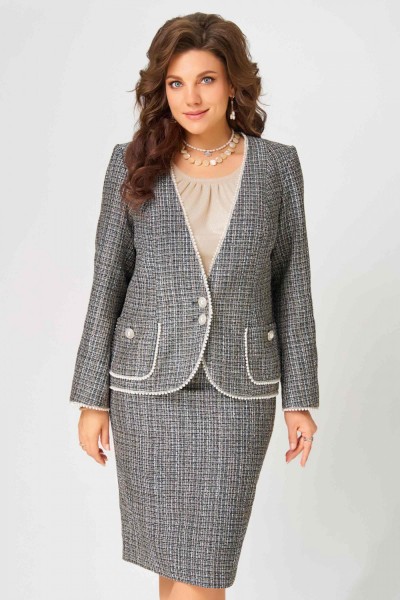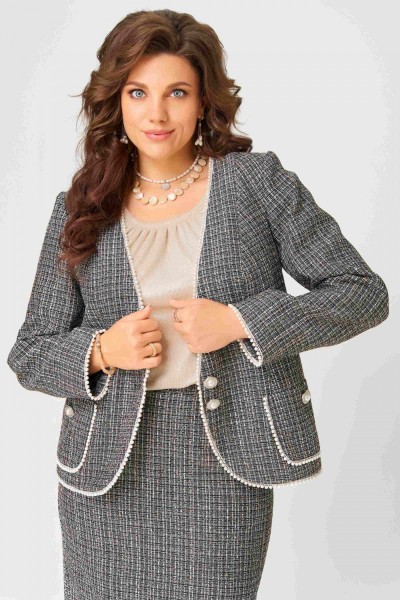 ""Ясиня"" — нарядная тройка, которая легко впишется в повседневность. Жакет, юбка и джемпер создают элегантный образ, подходящий как для торжеств, так и для рабочих будней. Стиль, комфорт и женственность — в каждой детали.