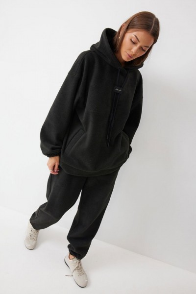 Джемпер прямого силуэта из комфортного трикотажного полотна. Горловина обработана капюшоном. Рукав со спущенной линией плеча, по низу на резинке. По низу джемпера притачной пояс. По переду декоративная нашивка и шнур.