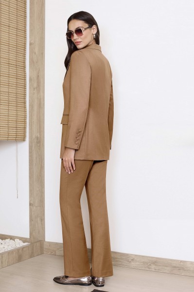 Комплектация: Жакет, жилетка , брюки. Дизайнерский брючный костюм с жилетом в стиле «Old Money» главный тренд этого сезона. Современная интерпретация и новый взгляд на понятие классики, отличный выбор для поклонников минимализма. Жакет прямого силуэта с отрезными бочками и V-образным вырезом с воротником пиджачного типа на основе классического мужского костюма, застегивается на две пуговицы. Перед оформлен нагрудным карманом с широкой листочкой и вертикальными вытачками до входа в карман (карманы функциональные с клапаном и двумя обтачками). Спинка с отрезными бочками и средним швом. Рукава втачные с отлетной шлицей (шица расстегивается), застегивается на пуговицу обтянутую тканью. Жилет полуприлегающего силуэта с V-образным вырезом и отрезными бочками. Перед оформлен нагрудными вытачками до входа в карман. Спинка со средним швом и отрезными бочками. Прямые удлиненные брюки, расширенные к низу от колена главный тренд этого сезона. Брюки средней посадки с косыми карманами и отрезным поясом , в размерах 50-52-54 по бокам на резинке. Застежка обработана по классической технологии (гульфик с молнией и пуговица на поясе). Вся обработка выполнена как в классических итальянских костюмах. Жакет и жилет на подкладке.