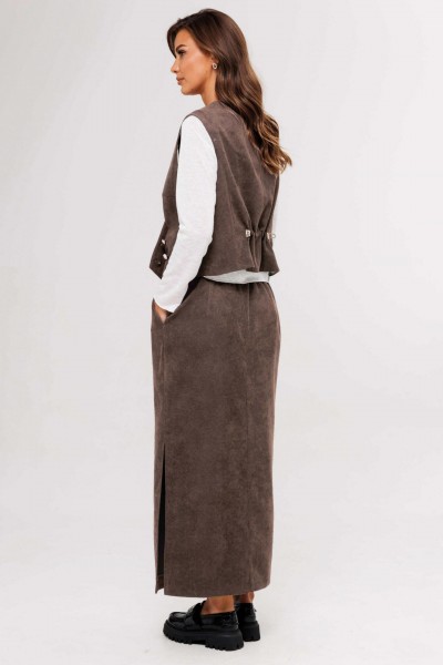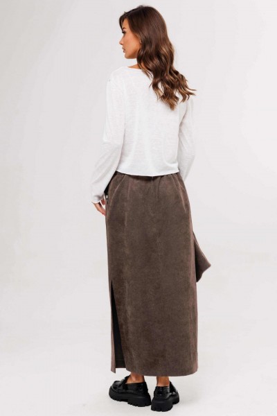 Юбка прямая с застёжкой и боковыми карманами по переднему полотнищу, и разрезом сбоку, из текстильного трикотажного полотна эффекта ""вельвет"". Пояс эластичный в области спинки.
