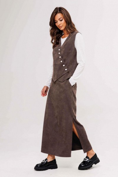Костюм с жилетом - прекрасное решение для смелых экспериментов. Выполненный в ахроматической цветовой гамме, он позволяет дополнять себя различными аксессуарами и создавать каждый раз новые актуальные образы.
