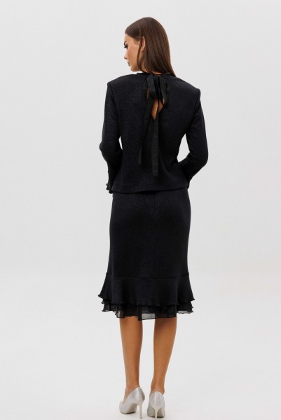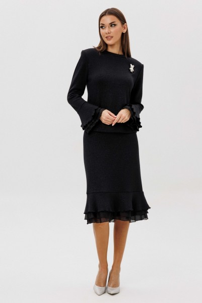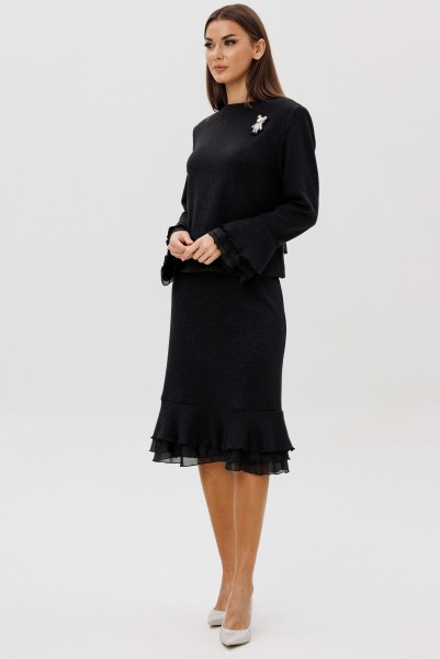 Изящный юбочный комплект из мягкого вискозного трикотажа с деликатным вкраплением люрекса — воплощение утончённости и женственности.