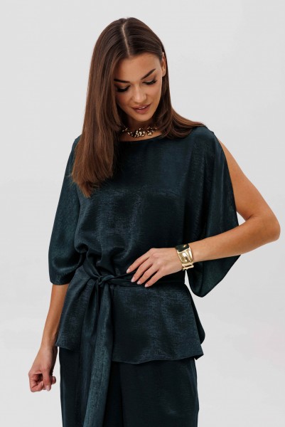 Роскошный брючный комплект из высококачественного атласа — это готовый образ для особых случаев и стильных выходов. Свободная блуза beautifully драпируется, мягко играет на свету и позволяет носить её как в расслабленном варианте, так и подчёркивая талию поясом. Широкие брюки на комфортной резинке создают эффект удлинённых ног и дарят полную свободу движений. Современная элегантность, которая всегда смотрится дорого и effortlessly chic.