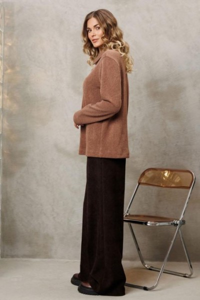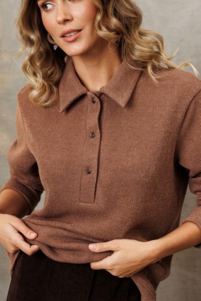 Джемпер прямого силуэта с воротником поло из теплого трикотажного полотна. Рукав втачной одношовный.