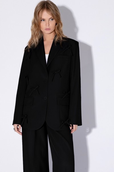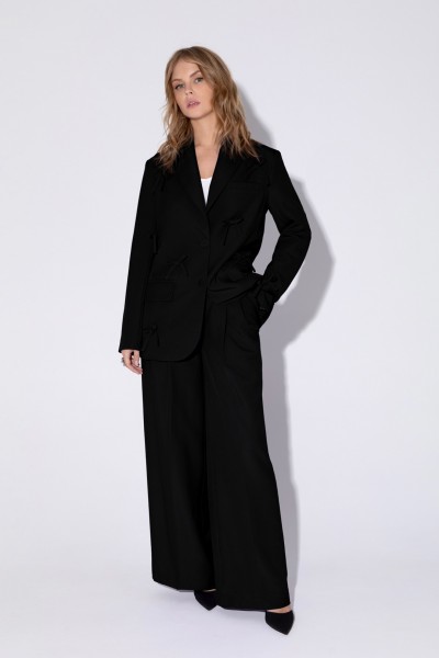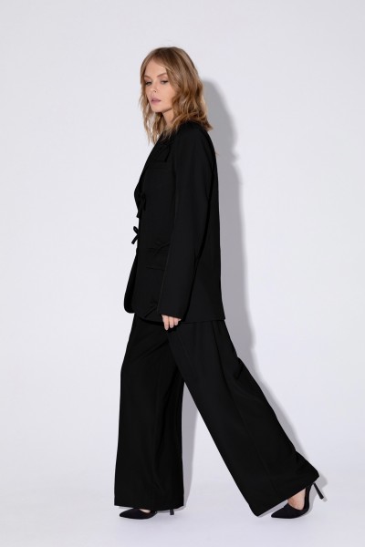 Костюм-двойка из оверсайз жакета с бантиками и брюк-палаццо.