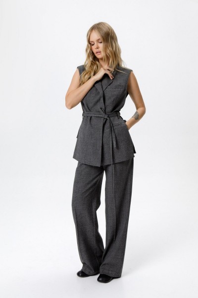 Костюм-двойка из прямого жилета и широких брюк со стрелками.