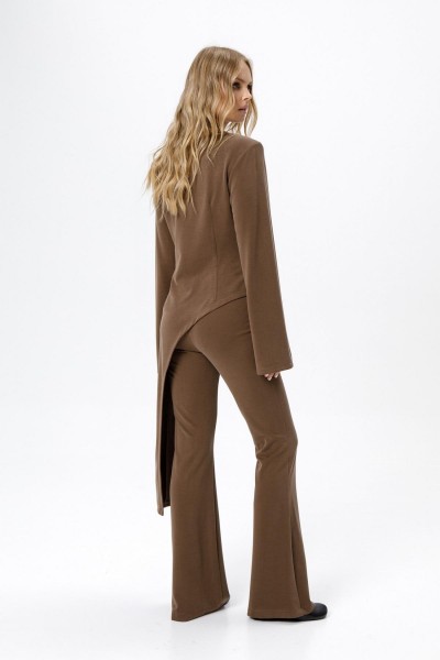 Трикотажный костюм-двойка из асимметричной туники и облегающих брюк-клеш.