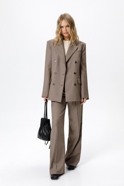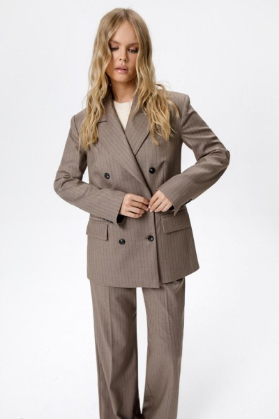 Детали: жакет свободного покроя и полуприлегающего силуэта, двубортная застежка на петли и пуговицы, отрезные бочки, пиджачный воротник, функциональные карманы, жакет на подкладке.