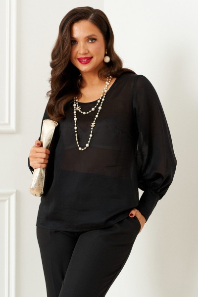 Блузка прямого, свободного силуэта, выполнена из легкого полупрозрачного полотна.