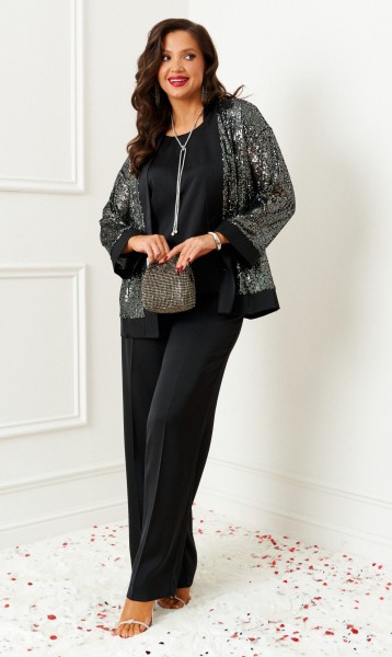 Брючный комплект в комбинации сияющего роскошного атласа с эксклюзивным полотном с пайетками не останется незаметным в главную новогоднюю ночь!