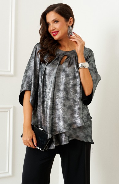 Блуза свободного кроя из легкой струящейся ткани, силуэт блузы отлично драпируется на фигуре.