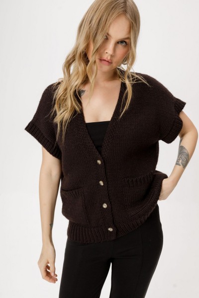Комплект-двойка из свободного вязаного жилета с шерстью и трикотажных облегающих брюк-клеш.