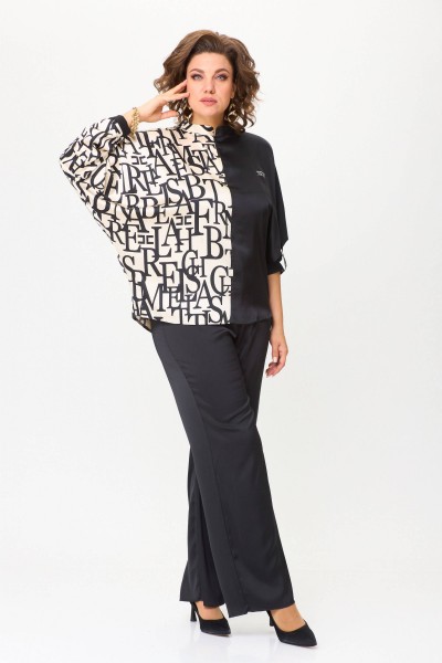 Комплект, который состоит из брюк свободного кроя и блузки.