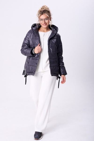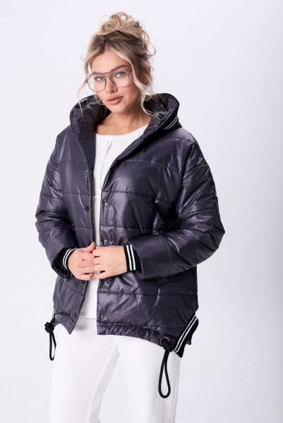 Куртка женская свободного кроя представлена в большом размерном ряде. Современная и удобная куртка освежит гардероб, а благодаря непромокаемой и непродуваемой ткани зищитит от непогоды. Утеплитель " Hoopon" подходит для температуры от 0 до - 5. Объемный капюшон украшен трикотажным довязом. Перед с удобными боковыми карманами. Рукава со спущенной линией плеча, а внизу с трикотажными манжетами . По бокам внизу фигурные разрезы округлой формы так же украшены трикотажными довязами и шнуром. Застежка на кнопках выглядит современно и очень удобна в эксплуатации. Длина по спинке 76 см. , длина рукава 54 см.
