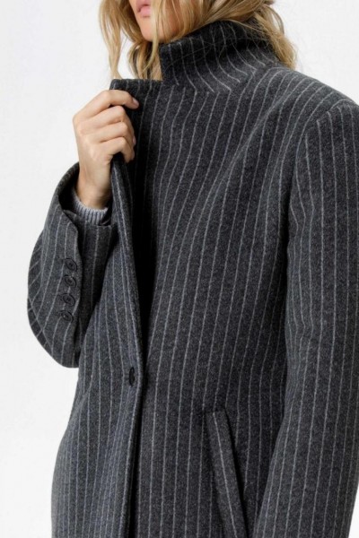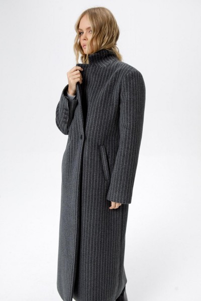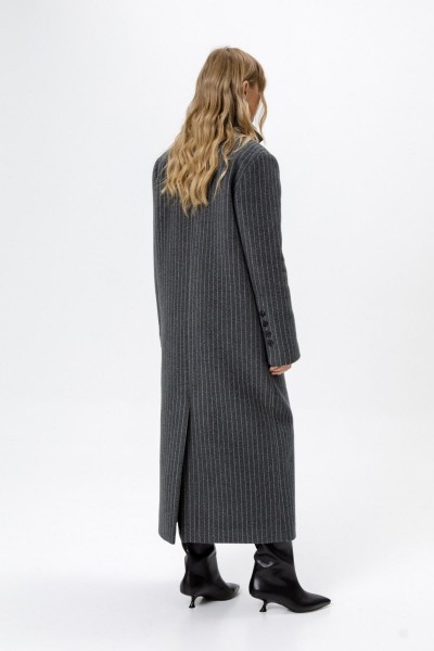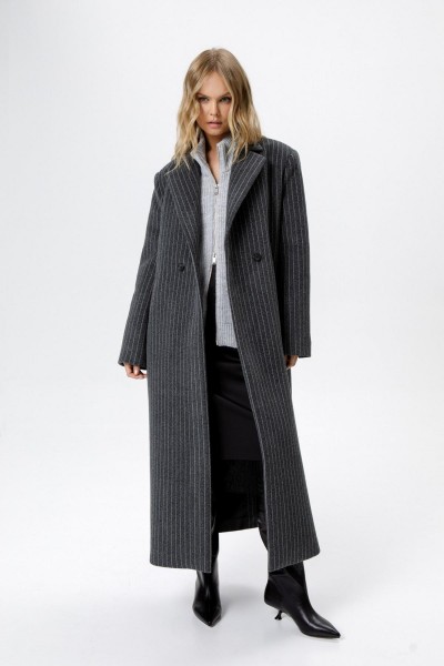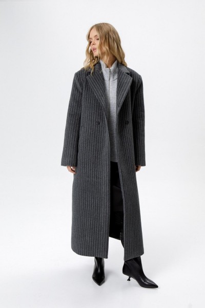 Пальто свободного силуэта из ткани в полоску.