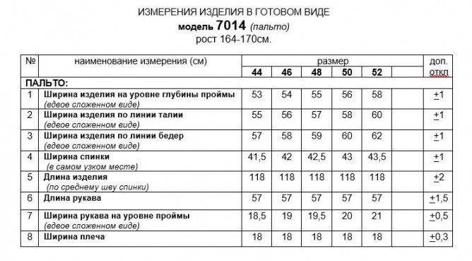 Длина (по среднему шву спинки) = 118 см. (+1см.)