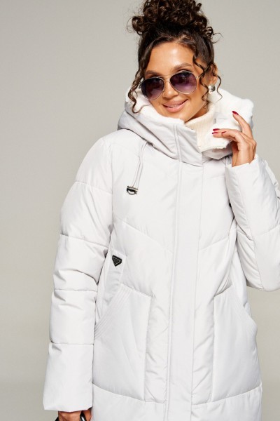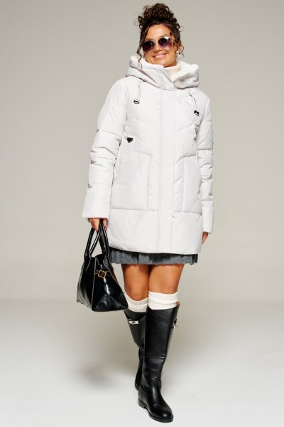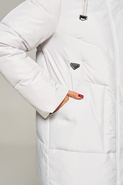 Капюшон с застежкой спереди умеренного объема. По периметру капюшона с внутренней стороны выполнена оторочка из искусственного меха, которая выполняет декоративную и защитную функции, создавая дополнительное тепло и защиту от ветра и холода.